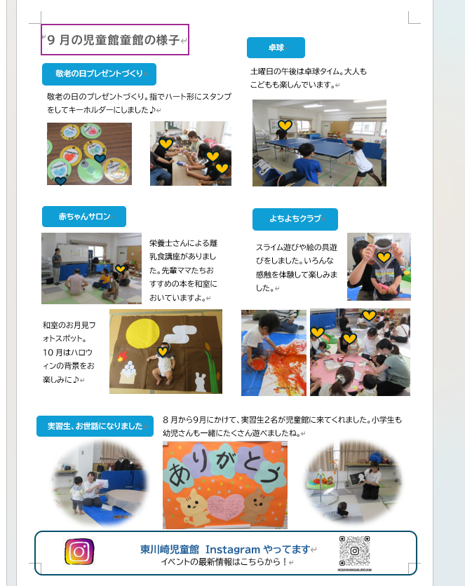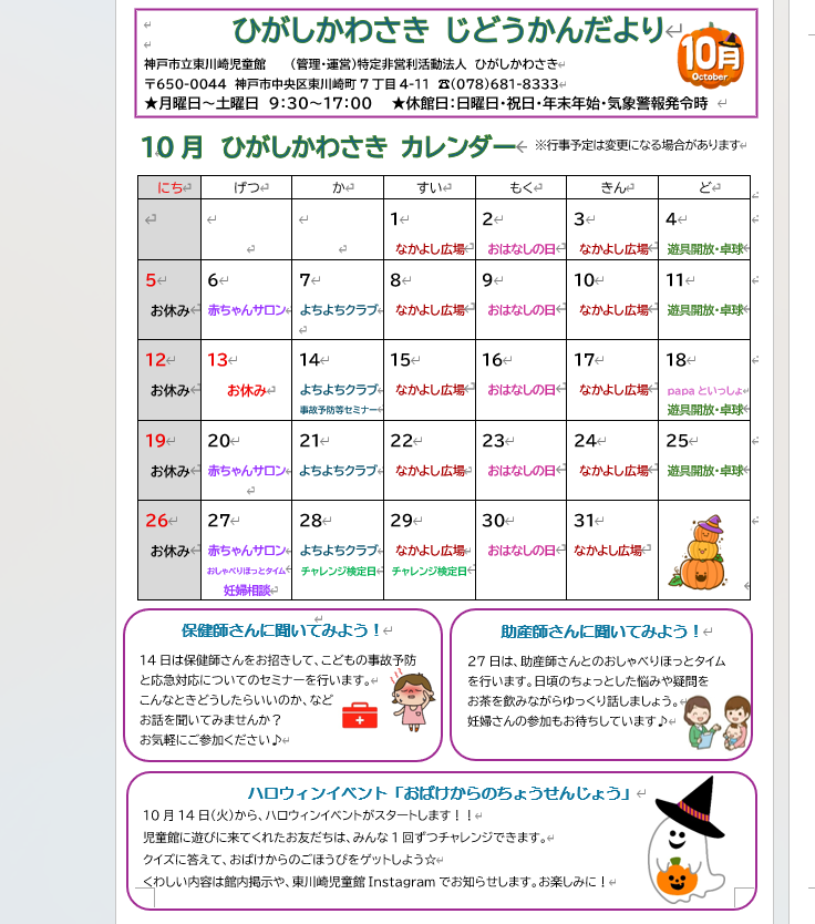 東川崎児童館の10月のじどうかんだよりです。ご来館おまちしております♪